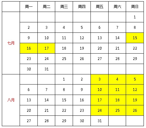黄色部分为计划施工的时间(施工通常为夜间12:00-4:00,如有特殊情况会推迟施工时间):