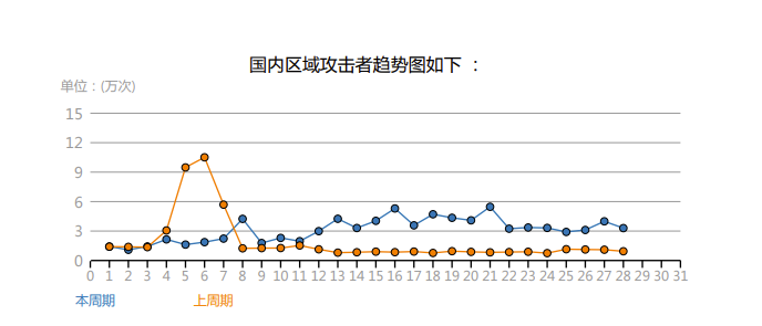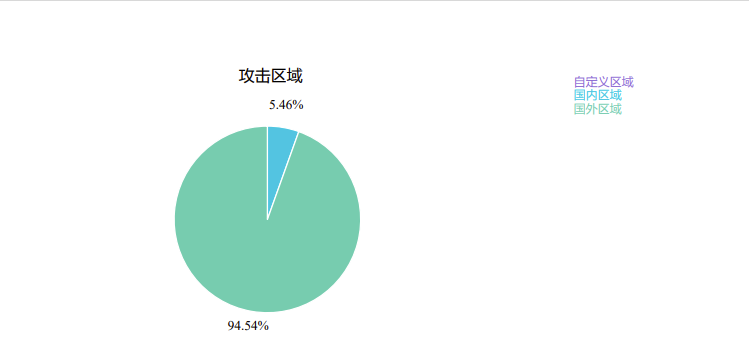 为了区分攻击者来自自定义区域、国内,还是国外,本报告分别按自定义区域、国内地区(注:统计到市级,部分到县级)、国外地区(注:统计到国家和地区级)统计和分析,国内攻击者的总次数为212.1万次,来自国外攻击者的总次数为3670.65万次。详见下图